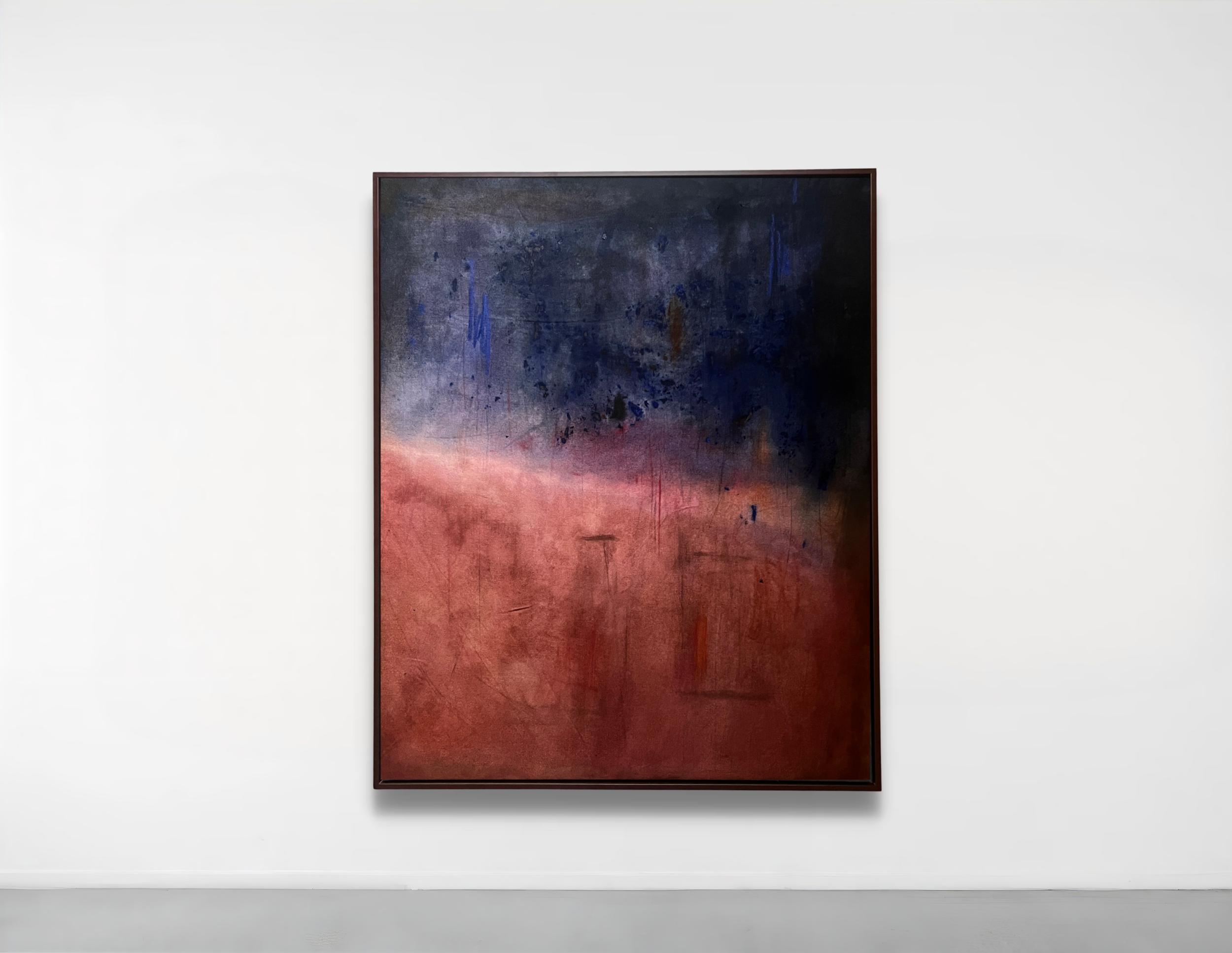 SkinField ist ein laufender Werkzyklus, der sich über die Jahre 2025/2026 erstreckt. Die Arbeiten entstehen auf roher Leinwand im engen Dialog mit Zeichnung, Pastellkreide, Wasser, Pigmenten und gesetzten Farbfeldern. Im Zentrum steht das Spannungsfeld zwischen Einschreibung, Verdichtung, Offenheit und Materialreaktion. In diesen Arbeiten geht es nicht um den schnellen Effekt, sondern um Wahrnehmung und Emotion, die sich langsam öffnen und im Körper entfalten.